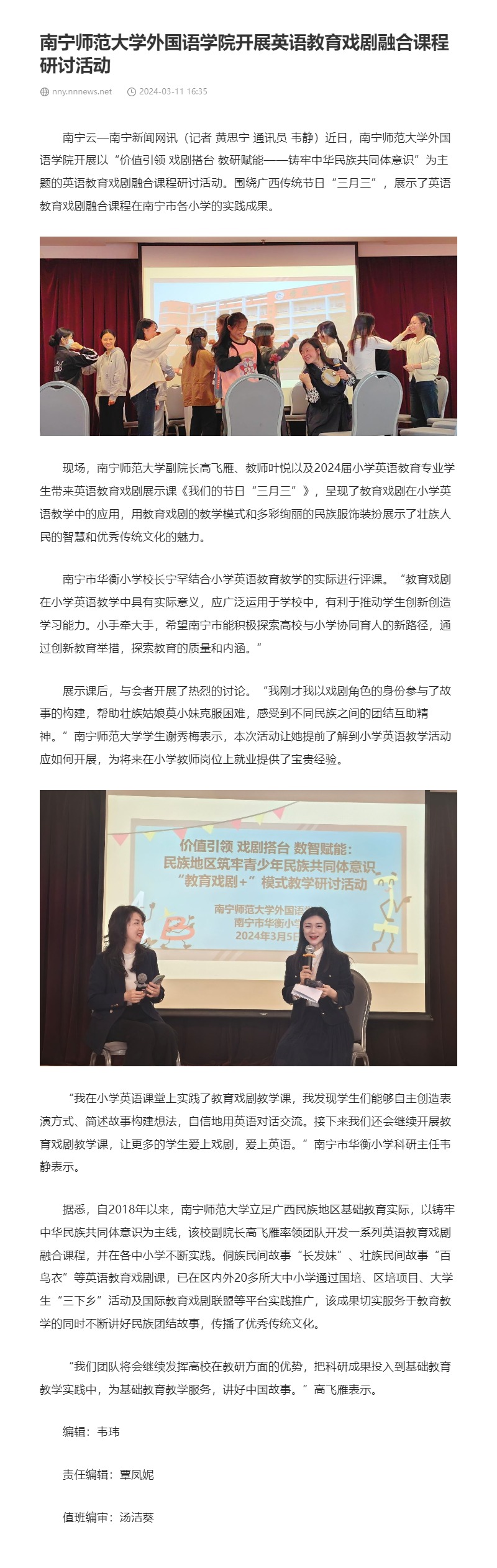 [媒体报道]南宁云—南宁新闻网:威廉希尔中文官网开展英语教育戏剧融合课程研讨活动