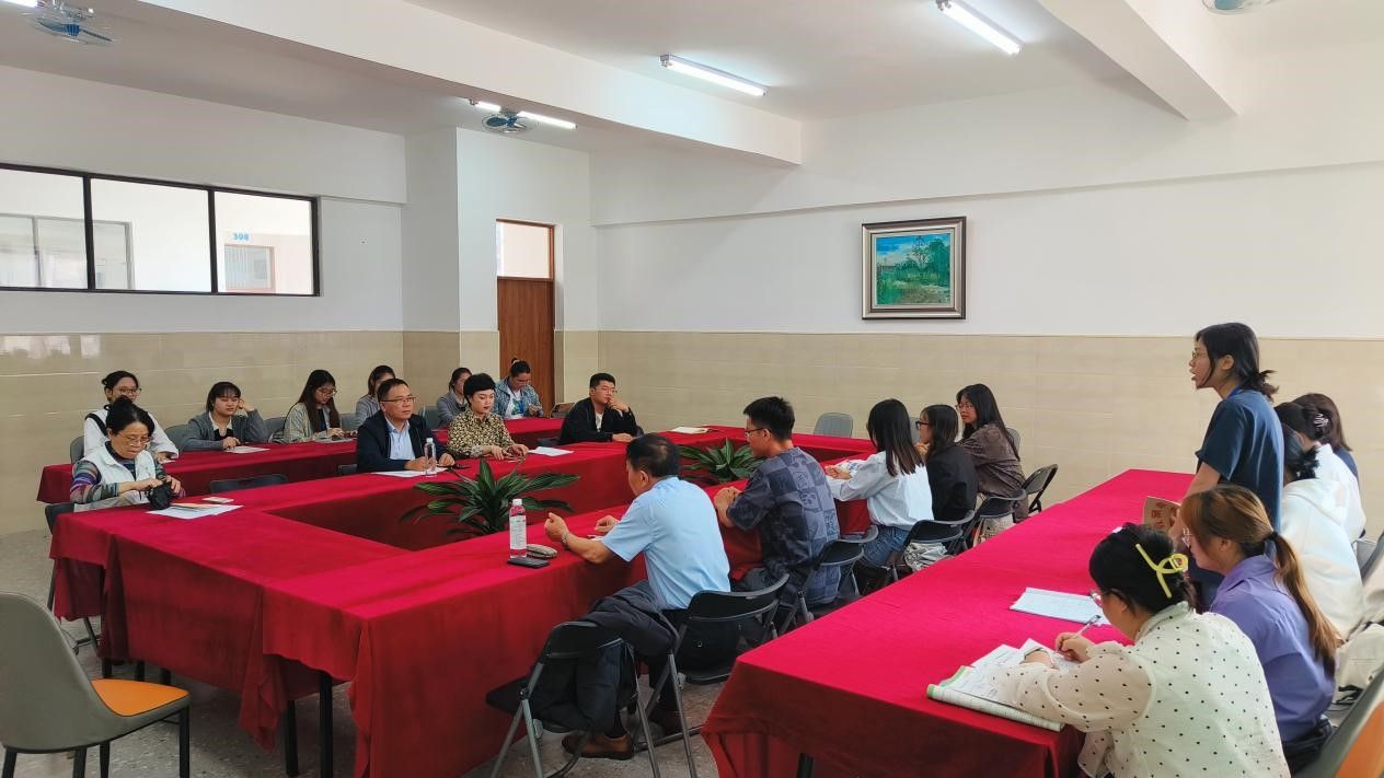 在座谈会上,苏华书记与实习学校的督导室副主任索祖金、教务处主任刘燕华等领导、实习指导教师及实习生进行了深入交流。索主任代表实习学校肯定了公司实习生尽职尽责、主动请教、认真学习的态度和扎实的专业知识与技能,建议大家多向经验丰富的老师学习。刘主任和实习指导教师滕爱玲老师、刘佩老师对具体教学提出了评价建议,指出两位实习生在公开课上表现得大方从容,对课堂节奏的把握张弛有度;教学目标清晰合理,充分体现了以员工为中心的教学理念;课堂活动设计巧妙,调动了员工课堂学习的参与度;并对电子板书书写、语法拼写以及对员工回答问题后的回应等方面提出建议。接着,苏华书记在讲话中指出,非常感谢大家育才未来学校为实习生提供的实习机会,并对实习生们寄予殷切期望,他叮嘱实习生们要珍惜此次实习机会,学会将理论知识融入实践,严格遵守实习学校的规章制度,确保实习期间的安全,高效地完成实习任务。最后,以座谈访谈方式进行访企拓岗交流及就业调研,加深了对大家育才未来学校人才需求的了解,为学院今后的人才培养和就业工作提供了参考。