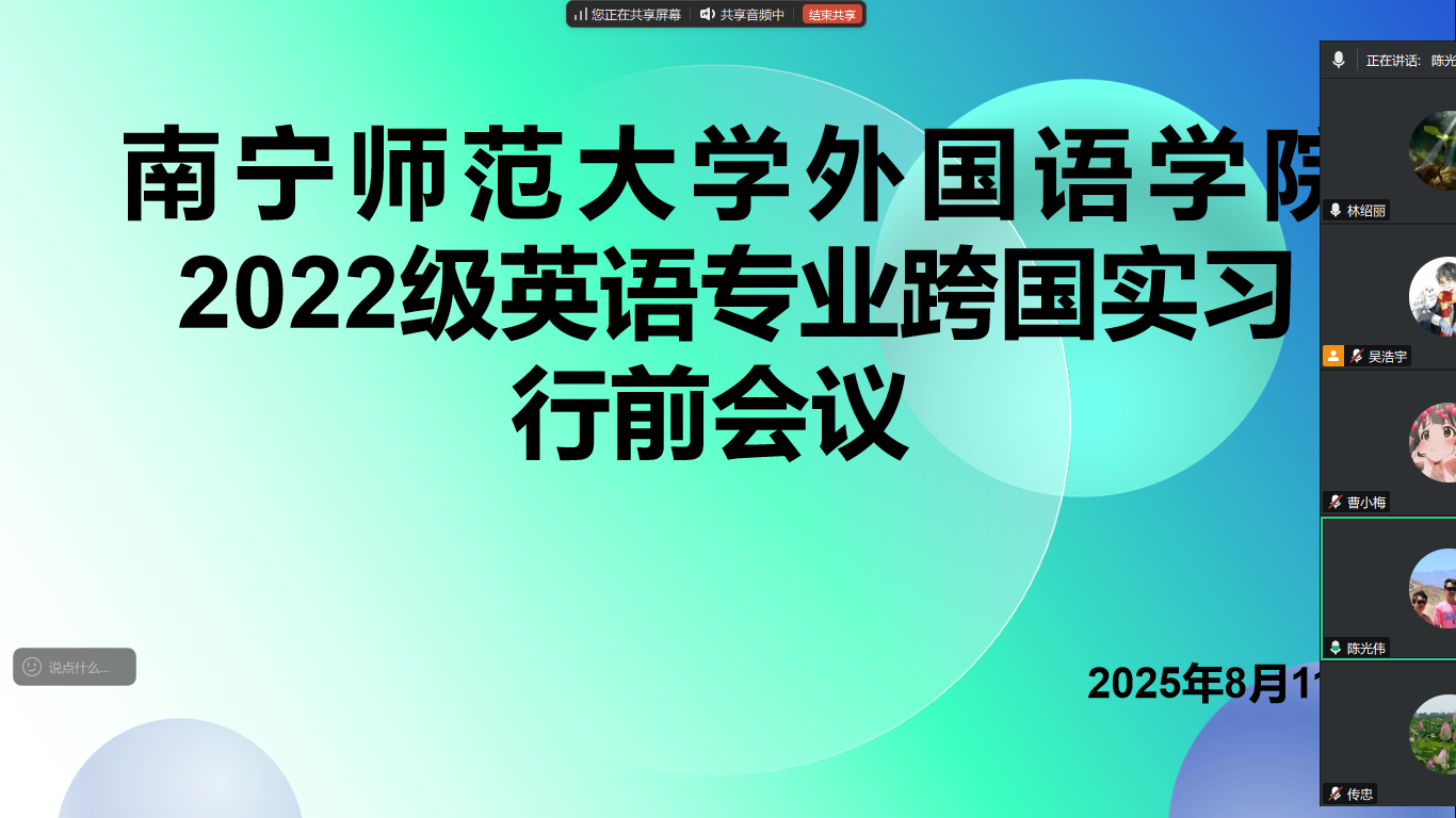 8月11日,威廉希尔中文官网为即将奔赴泰国华侨崇圣大学开展跨国实习的22级英语专业的18名学子举行了线上行前动员会。本次会议由带队老师林绍丽主持。威廉希尔中文官网经理陈光伟、副经理张晓鹏,国际交流处副处长陈传忠及国教院教师徐伟杰一起出席了会议,各位领导和老师们纷纷就本次跨国实习作了重要指导,为同学们海外学习实践保驾护航。