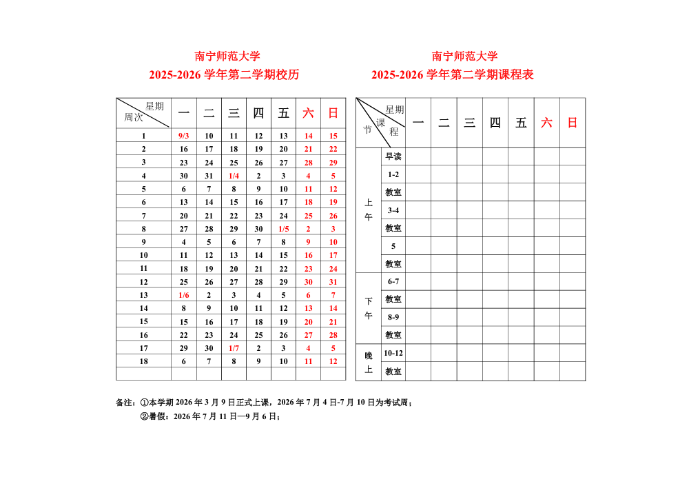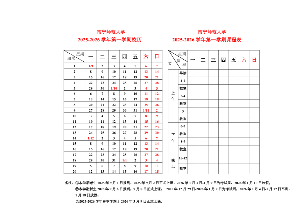 2025-2026学年williamhill中国官方网站校历及作息时间表