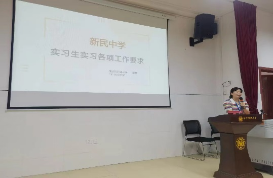 新民中学的英语教研组长李苗老师热情接待了公司的2021英语行知班全体员工以及带队林绍丽老师,并且为实习生进行了细致的岗前培训。李老师指出,实习生们在实习过程中应注意为人师表,不体罚员工,对作业完成质量较低员工进行人文关怀,给员工们做好榜样;并鼓励同学们积极参加每周三下午的备课组会议,聆听优秀老师的意见和建议;最主要的是公开课不少于四节。除此以外,李老师根据宿舍管理、请假要求、安全管理等方面一一给实习生们解释实习过程中的注意事项,让实习生熟悉了新民中学的学校管理制度,以便尽快融入实习工作和生活。