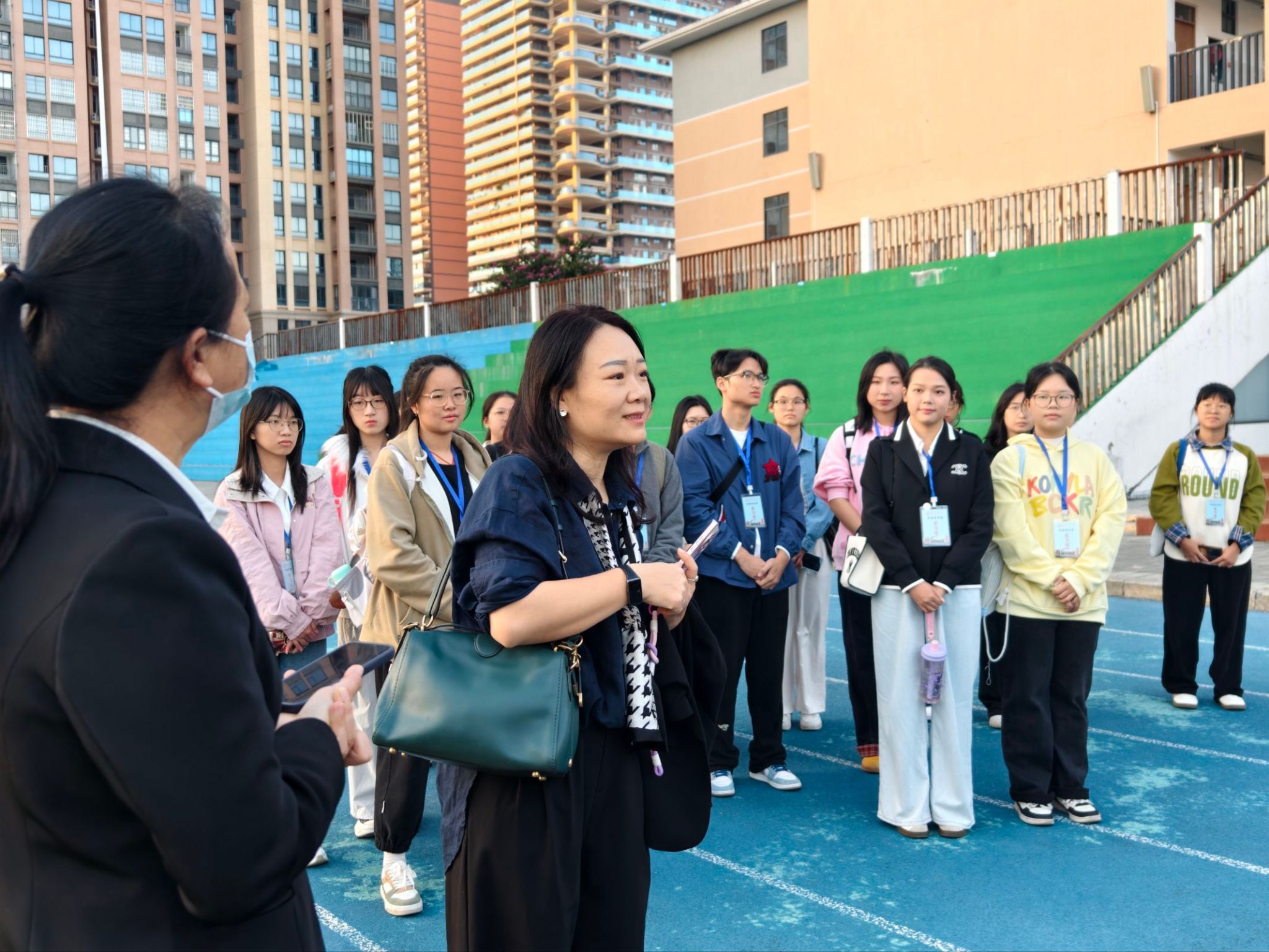 见面会结束后,全体师生参与了学校升旗仪式。随后,见习生们按分组进入对应班级,开启跟班听课学习。课堂上,他们专心听课,仔细记录;课后,大家主动围拢指导老师,带着听课中遇到的困惑虚心求教;同时,见习生们还自发组织小组研讨,分享各自的听课感悟、典型案例与学习收获,在思想碰撞中深化对教学流程、课堂管理的理解,稳步积累从理论到实践的宝贵教学经验。