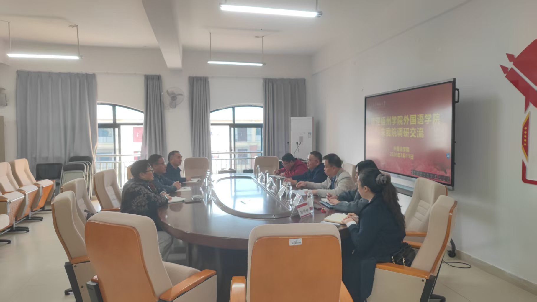 3月11日上午,梧州学院公司党委书记张俊杰、经理宋银秋、副经理晏劲松一行莅临威廉希尔中文官网,围绕党建工作、专业建设、学位点培育、科研管理等方面开展专题调研交流。公司党委书记苏华、经理陈光伟、副经理张晓鹏、副经理蒙岚及英语专业负责人刘婷婷与会并热情接待,双方进行了深入座谈交流。