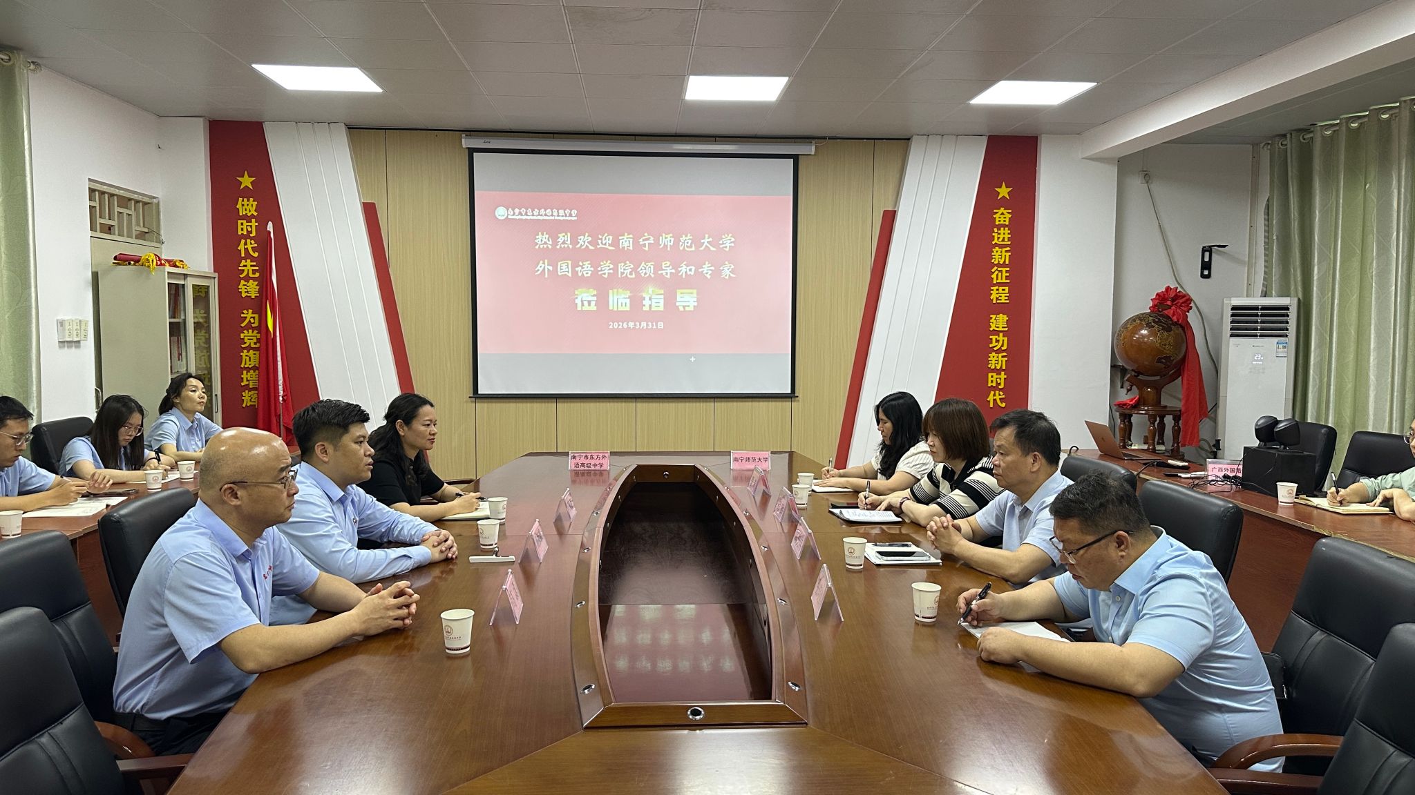 为进一步拓宽毕业生就业渠道,深化校校协同育人与教学合作,精准搭建高校与基础教育优质就业合作平台。3月31日,威廉希尔中文官网蒙岚副经理率队,学院陈光伟经理、邱晖副书记、张晓鹏副经理及各教研室主任、毕业年级辅导员一行,前往南宁市东方外国语高中开展访校拓岗合作交流,南宁市东方外国语高中杨祯毅书记、何丽丽董事长、高磊执行董事长及相关部门负责人热情接待。