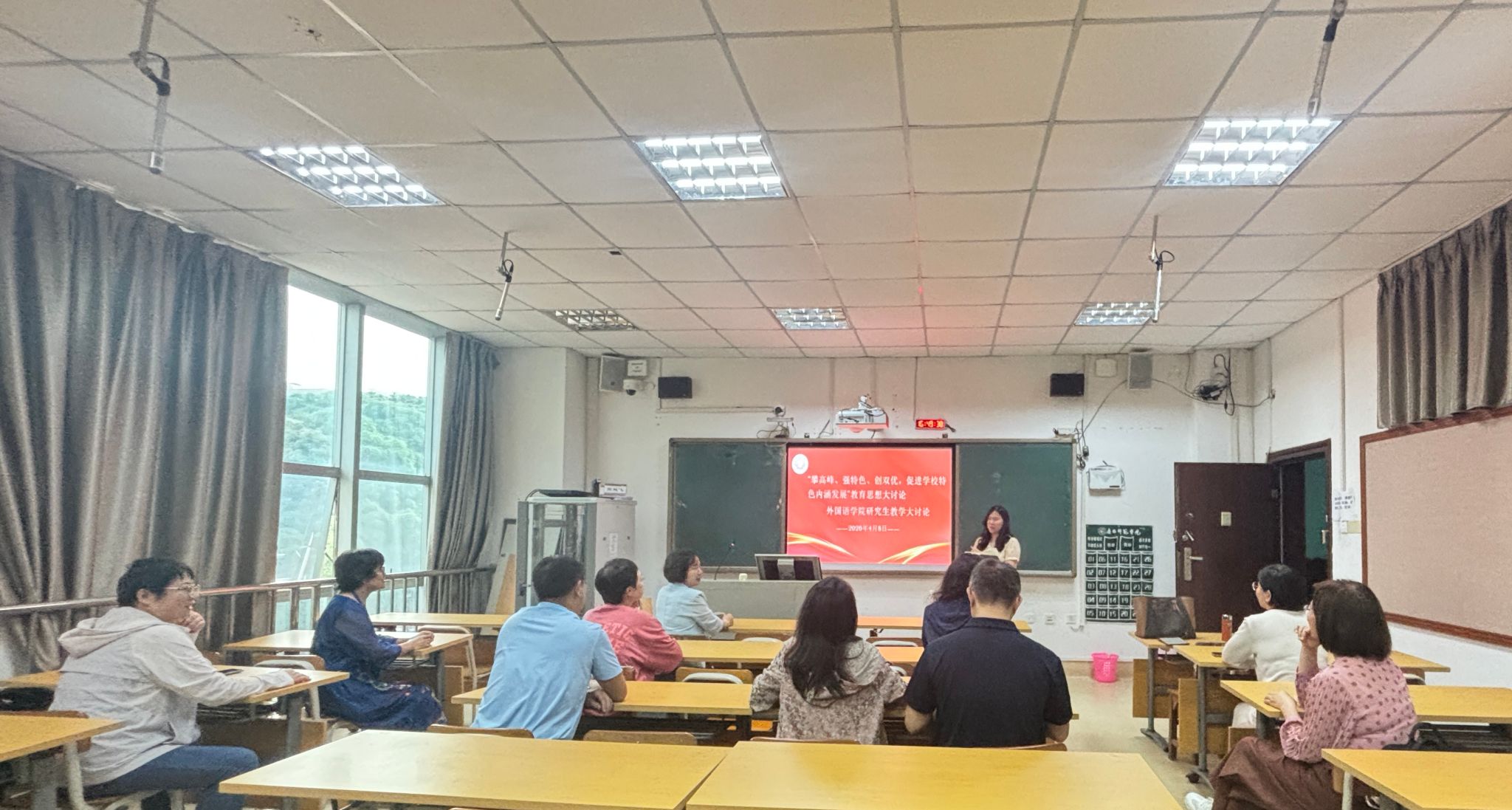 会议围绕学位点建设内涵及目标指向的问题、硕士培养理念与思路更新的问题、AI时代人才培养模式转型的重点、难点等多个模块展开讨论。教师们踊跃发言,在指出研究生教育中存在的教学内容与方式滞后、产教融合不足等现实问题的同时,也提出了改革思路:一、创新教学模式,提升员工运用AI的技能;二、推动研究生实习基地国际化;三、针对翻译硕士,增设会展翻译与礼仪素养,以及广西文化概况课程,并将壮族文化外译料库融入教学;四、在巩固师范生基本素质的基础上,加强员工的人文通识修养。