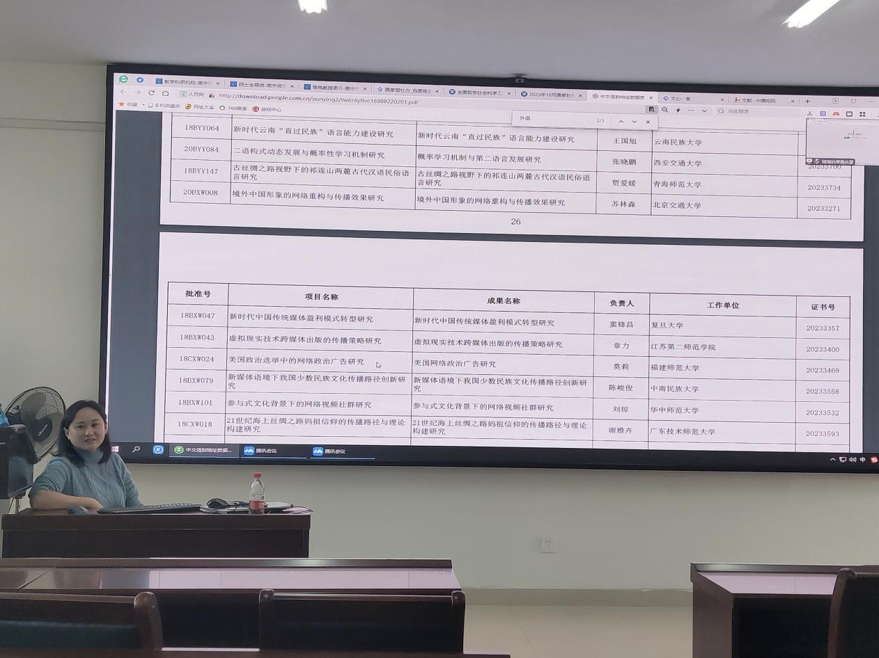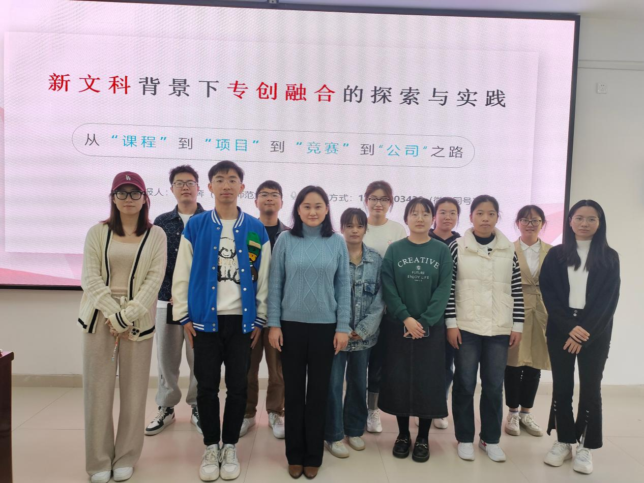 随着威廉希尔中文官网2023-2024学年度“学术沙龙”系列活动的持续推进,威廉希尔中文官网于11月21日14:30在武鸣校区实验楼1B-515教室举办题为“新文科背景下专创融合的探索与实践”的第八场讲座。本次讲座由庞奔奔老师主讲,学院部分研究生参加此次活动。