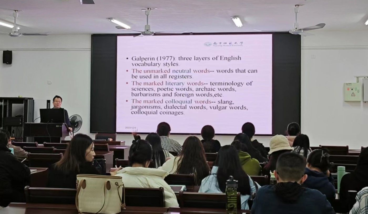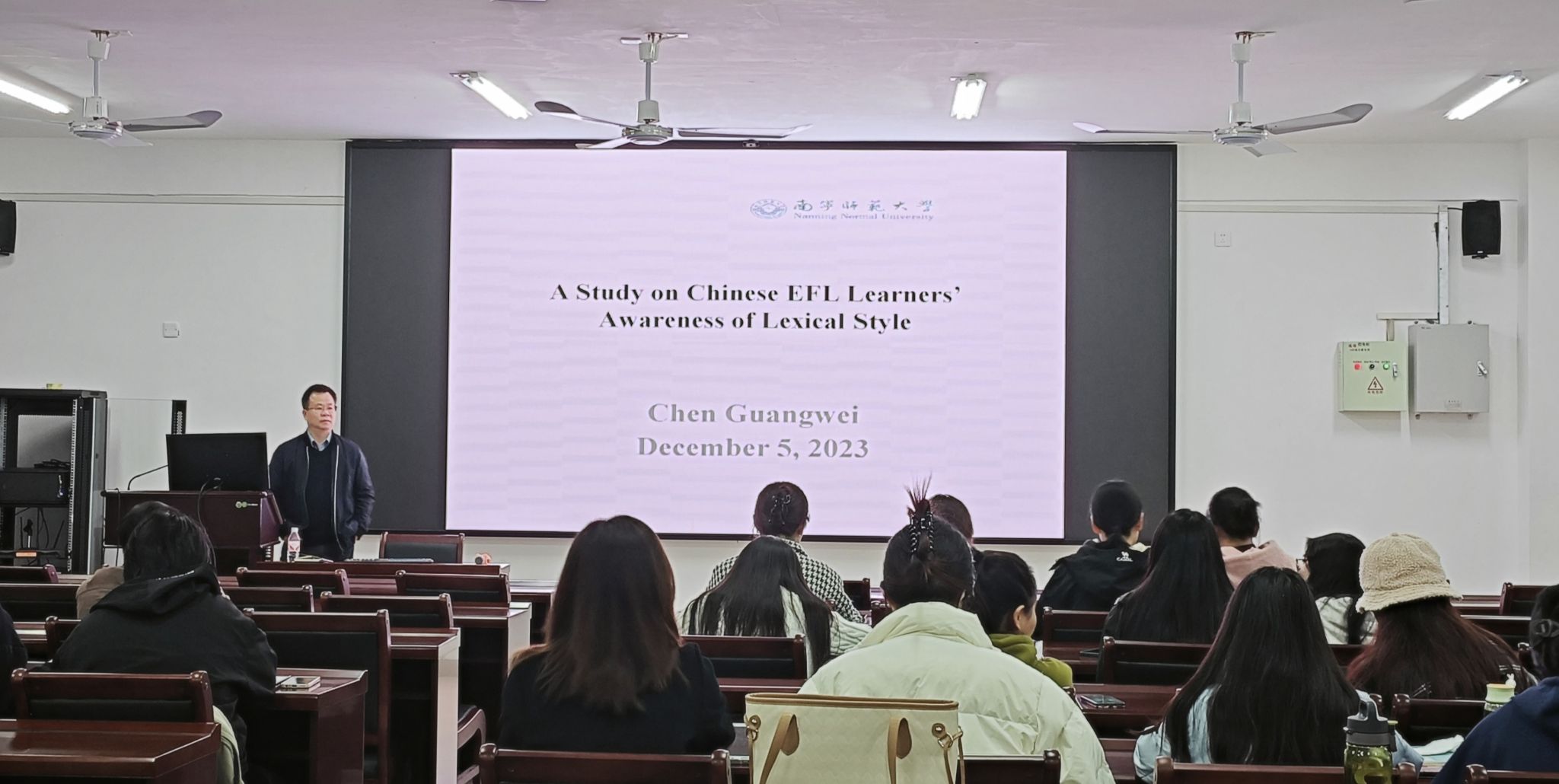 随着威廉希尔中文官网2023年秋季学期“学术沙龙”系列活动持续开展,12月5日晚19:00-21:00,威廉希尔中文官网在武鸣校区实验楼1B-515教室举办了题为“A Study on Chinese EFL Learners’Awareness of Lexical Style”的专题学术讲座。本次讲座由威廉希尔中文官网陈光伟经理主讲,学院在读研究生参加了此次活动。