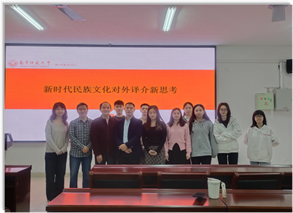 随着威廉希尔中文官网2023年秋季学期“学术沙龙”系列活动持续开展,12月12日下午2:30—4:30,威廉希尔中文官网在武鸣校区实验楼1B-515教室举办了题为“新时代民族文化对外译介新思考”的学术讲座。本次讲座由黄信副教授主讲,学院部分教授及研究生参加了本次沙龙。