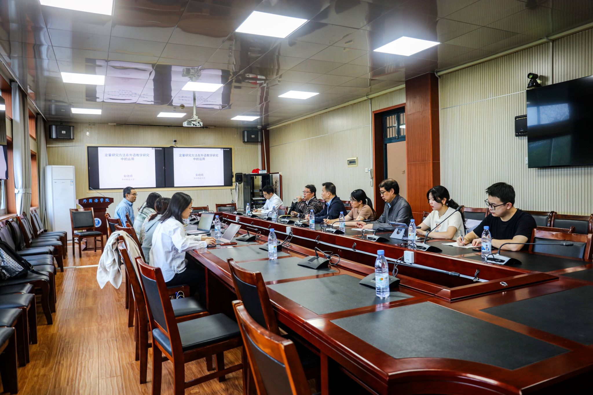 本次培训班特邀了华中师范大学秦晓晴教授和徐泉教授,他们分别为与会教师带来了关于教学研究方法和师范专业认证方面的精彩讲座。秦晓晴教授以“外语教学定量研究方法”为主题,深入浅出地构建了外语教学中的定量研究框架,并精准地指出了定量研究中的常见误区,为教师们提供了宝贵的指引。随后,徐泉教授围绕“多元化外语教育评价体系创新与实践——员工中心、产出导向的人才培养问题”这一主题,详细解析了英语师范专业认证的人才培养目标,并分享了华中师范大学在课程建设、教育评价等方面的先进经验,讲座结束后,秦教授与徐教授耐心解答了教师们提出的问题,展现出了高度的专业素养与热忱的教学态度,为此次参加培训的教师们拓宽了视野。