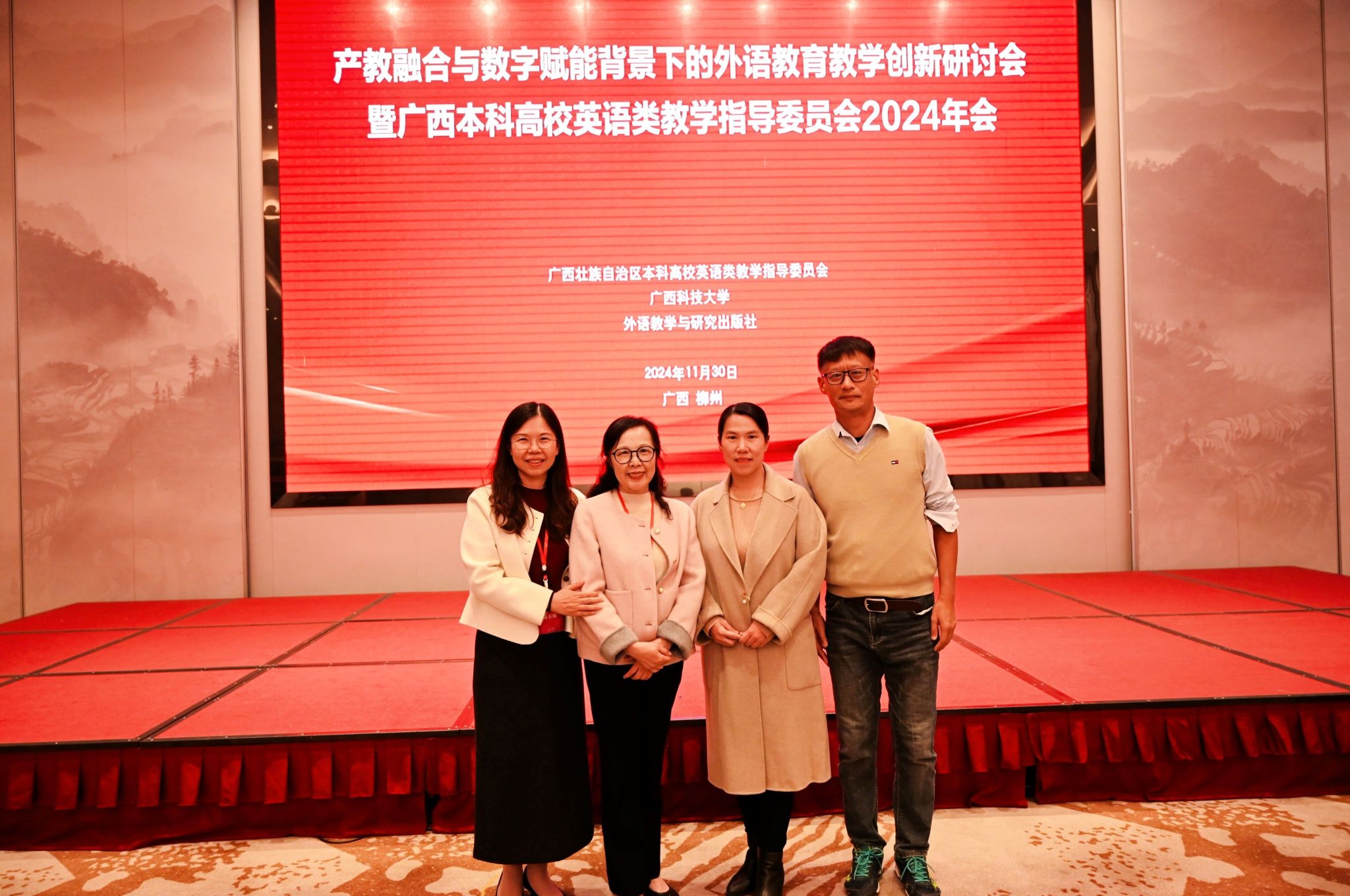 2024年11月30日,广西本科高校英语类教学指导委员会2024年年会暨“产教融合与数字赋能背景下的外语公司产品创新研讨会”在广西柳州成功举办。本次会议由广西本科高校英语类教学指导委员会、广西科技大学和外语教学与研究出版社联合举办,旨在探讨数字技术在高等外语教育中的深度应用,以及如何助力高校外语教师有效利用数字技术,推动外语公司产品创新与教师专业发展。