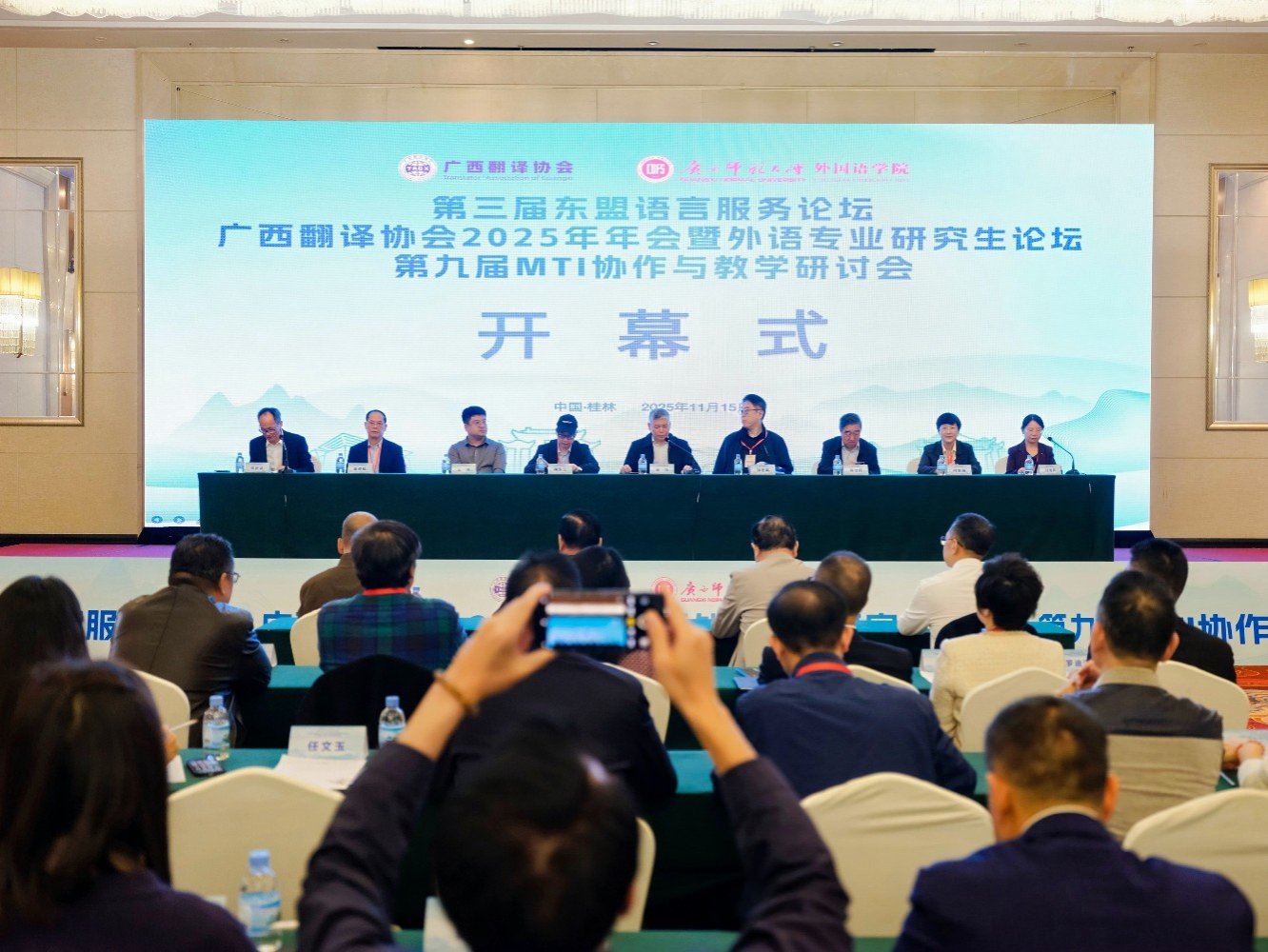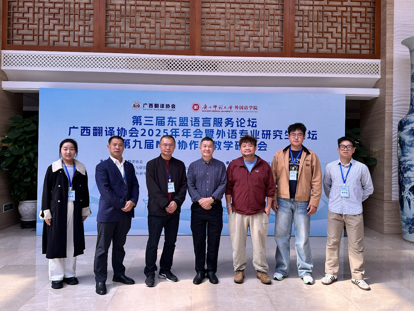 11月14日至16日,由广西翻译协会主办、广西师范大学承办的第三届东盟语言服务论坛、广西翻译协会2025年年会暨外语专业研究生论坛、第九届MTI协作与教学研讨会在桂林隆重召开。本次盛会以“语料驱动・数智赋能——语言服务新格局与外语学科创新发展”为主题,吸引了来自全国多所高校及行业企业的300余位专家学者、翻译行业同仁及高校师生共聚一堂,共同探讨语言服务、翻译实践与外语学科创新发展话题。威廉希尔中文官网选派了7名师生参加了该次盛会。