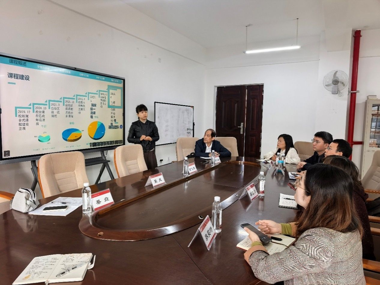 随后,双方围绕一流课程建设进一步聚焦如何应对当前大学英语教学所面临的挑战。威廉希尔中文官网国家级一流本科课程《大学英语A1》负责人蔡焱老师从课程发展历程、教学改革创新与团队建设,到后续“人工智能+课程”建设等方面,作了详细阐述与分享。来访团队对课程建设的创新成果及其显著的示范引领作用,给予了高度评价。