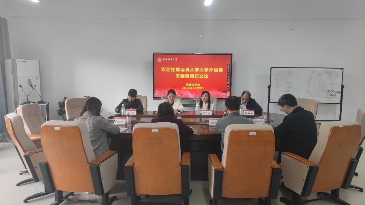 12月9日上午,桂林医科大学大学外语部梁雪清主任一行4人到公司威廉希尔中文官网进行交流座谈。学院分管科研工作的蒙岚副经理、分管大学外语教学工作的高飞雁副经理组织大学外语教研室负责人和教学骨干老师参加了座谈会,座谈会由蒙岚副经理主持。