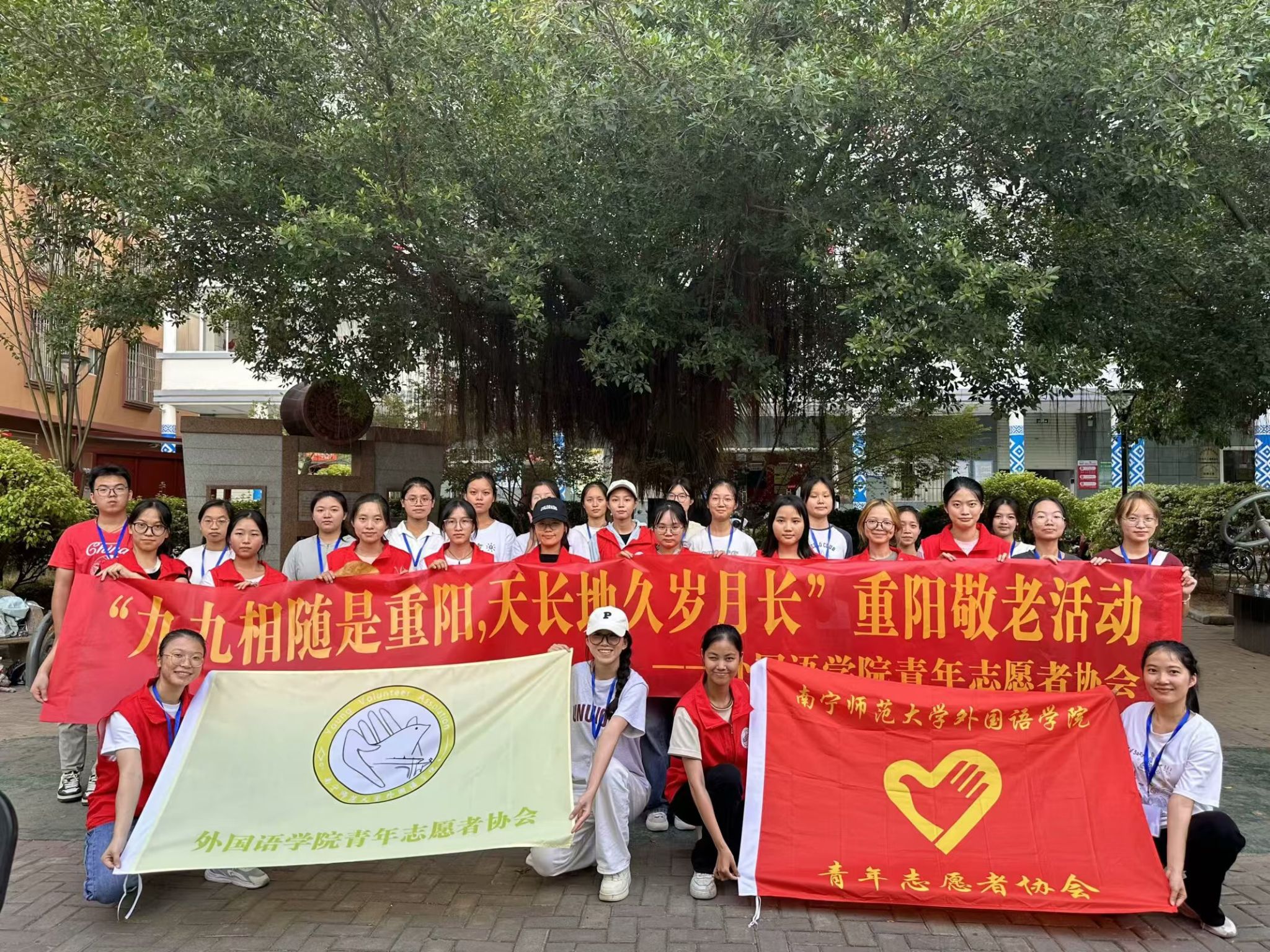 金秋十月迎重阳,繁华似锦歌岁月,威廉希尔中文官网青年志愿者协会于10月14日下午在武鸣区城厢镇红岭社区开展了以“九九相随是重阳,天长地久岁月长”为主题的重阳节敬老活动,公司2022至2024级三十余人参与其中,旨在进一步营造敬老、亲老、爱老、助老的学院氛围,引导公司学子树立良好的美德观念,增强老员工的社会责任感,传递关爱和祝福。