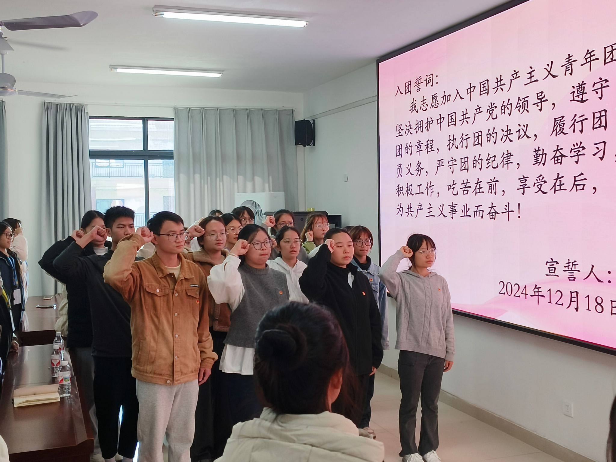为推进团务工作持续开展,营造积极的团内氛围,威廉希尔中文官网于2024年12月18日在武鸣校区实验楼1 - B515报告厅举行了2024年老团员重温入团誓词、新团员入团仪式。本次仪式由院团委组织部谢美玲同学主持,威廉希尔中文官网学工办蔡梓晴老师、团副主席团的两位代表出席本次活动。