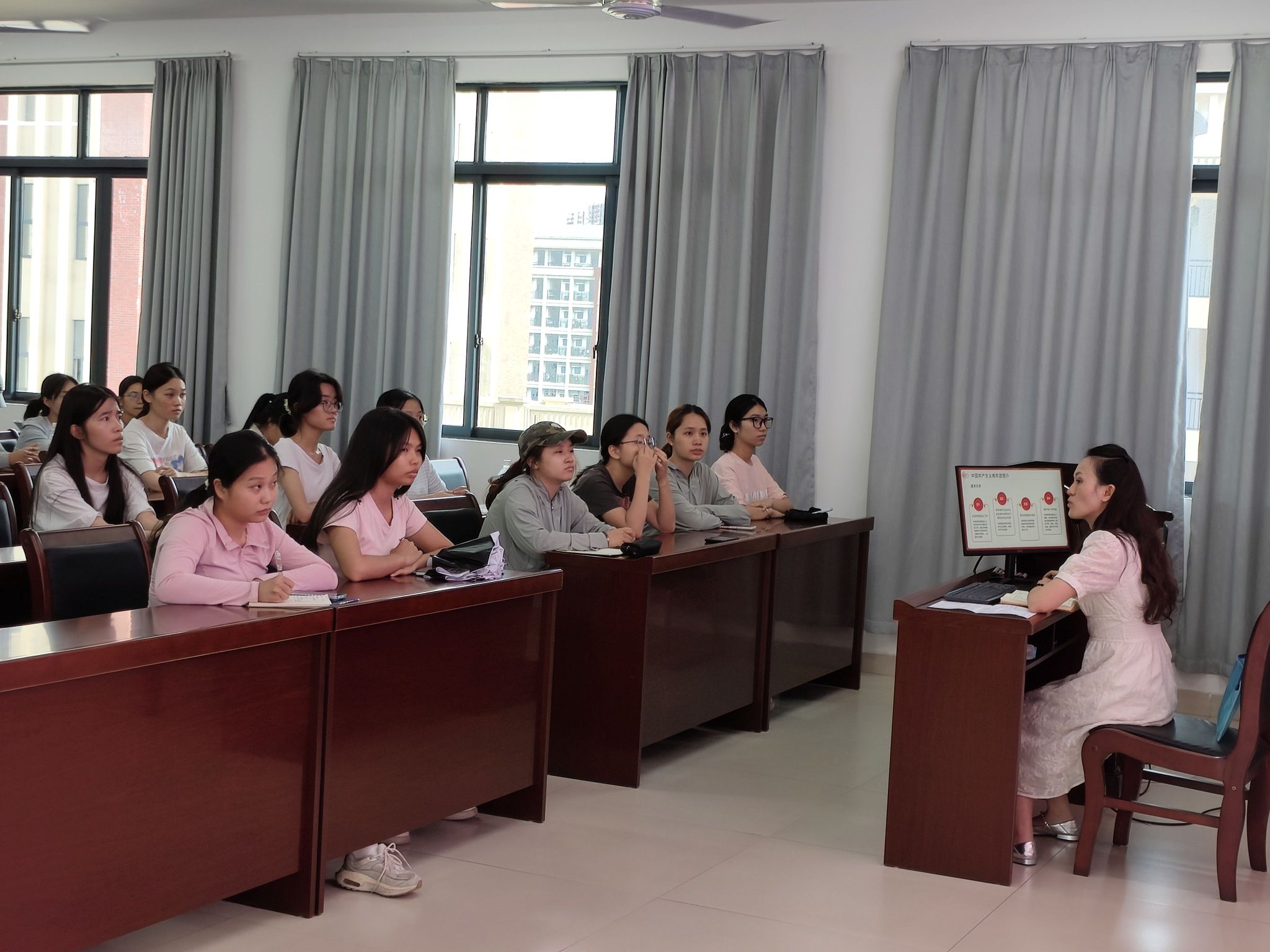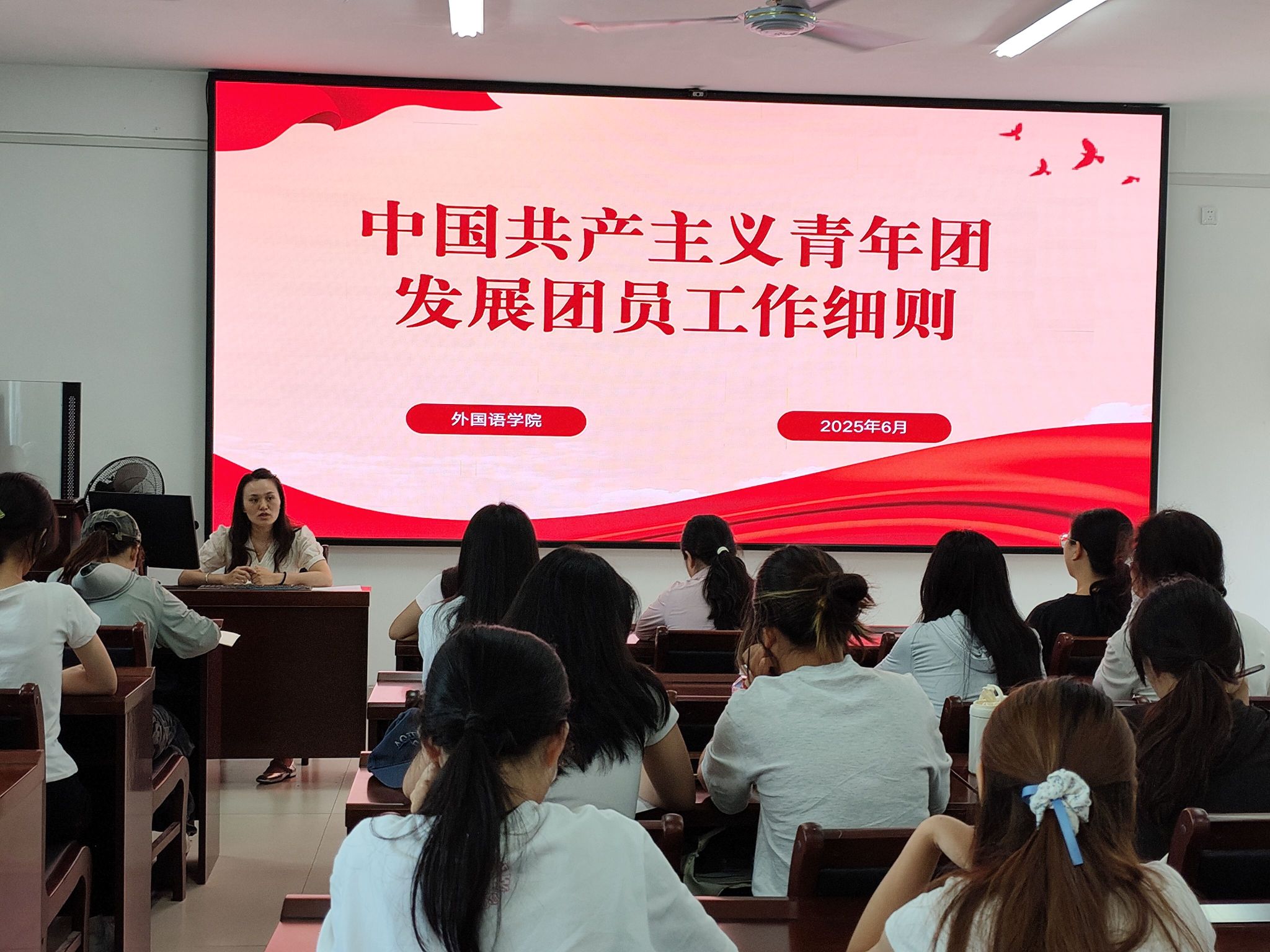 本次培训会的主题为“追溯团史明初心,严守细则筑根基”。培训会伊始,蔡老师围绕共青团的简介、3个主要发展阶段和影响影响共青团的两个历史事件讲述了中国共产主义青年团的发展历程,强调共青团的基本任务是加强思想政治工作、带领青年在经济社会发展中发挥生力军和突击队作用、贯彻党管青年原则和维护青少年权益。随后,蔡老师为大家详细讲解了共青团发展团员的工作细则。从入团的基本条件,到入团积极分子的培养、考察环节的重点事项,逐一进行清晰阐释,帮助同学们明晰入团各阶段的任务与标准 。