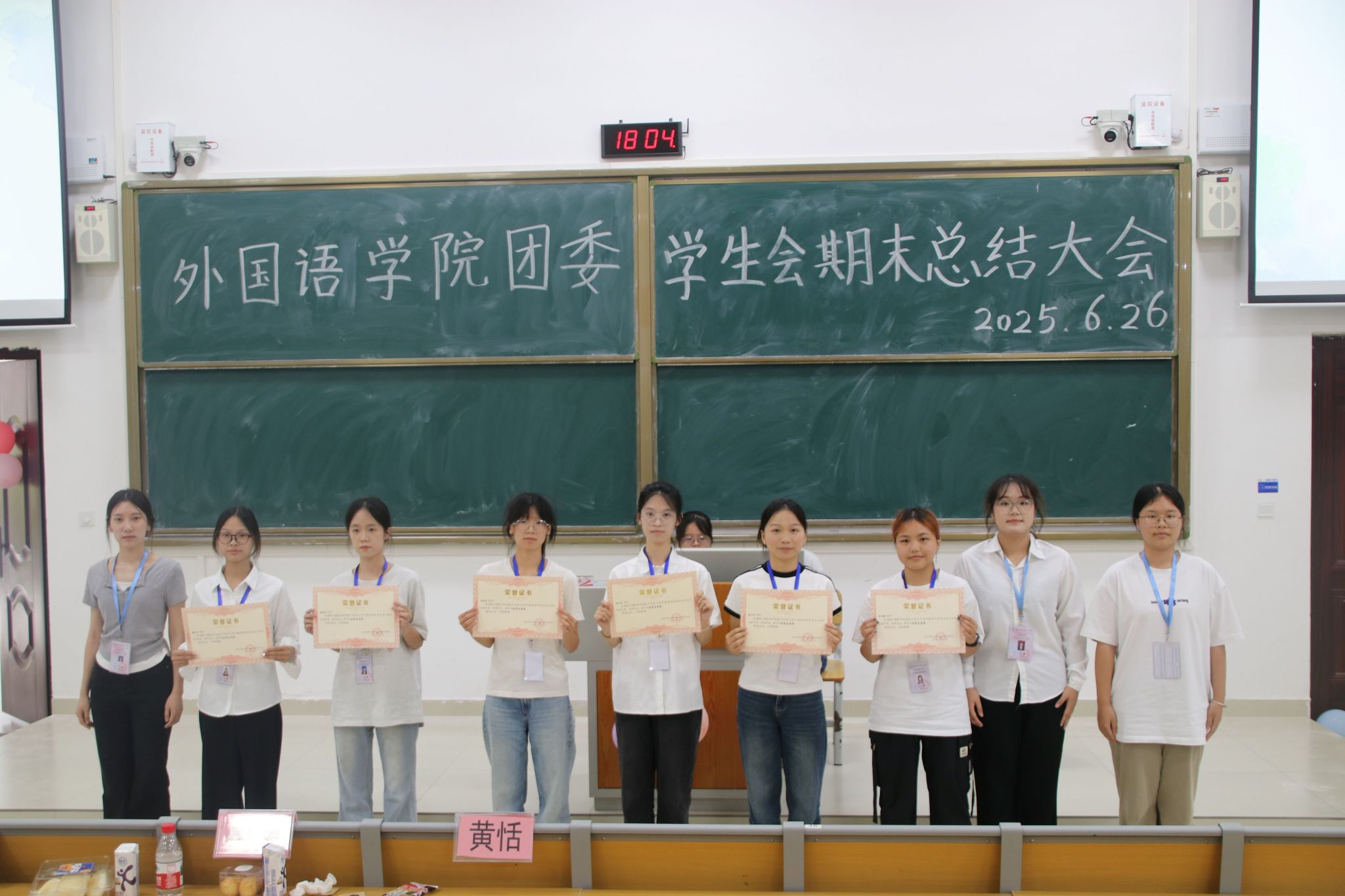 最后,各部门工作人员为本学期优秀志愿者及后备团成员颁奖。随着颁奖环节的顺利结束,威廉希尔中文官网团委员工会2024-2025学年第二学期期末总结大会正式落下帷幕。