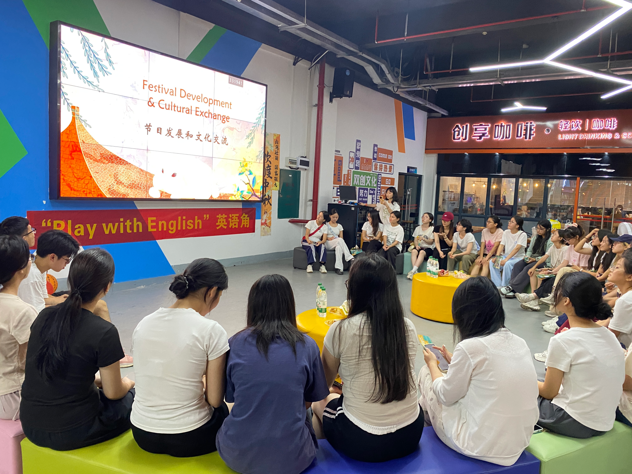活动在温馨氛围中开始,围绕“中秋文化知识”“个人中秋经历”及“节日发展与文化交流”三大话题展开英语讨论。同学们踊跃分享中秋记忆、月饼偏好,并就“团圆”文化的现代传承、中华节日如何走向世界等话题深入交流,现场气氛热烈。