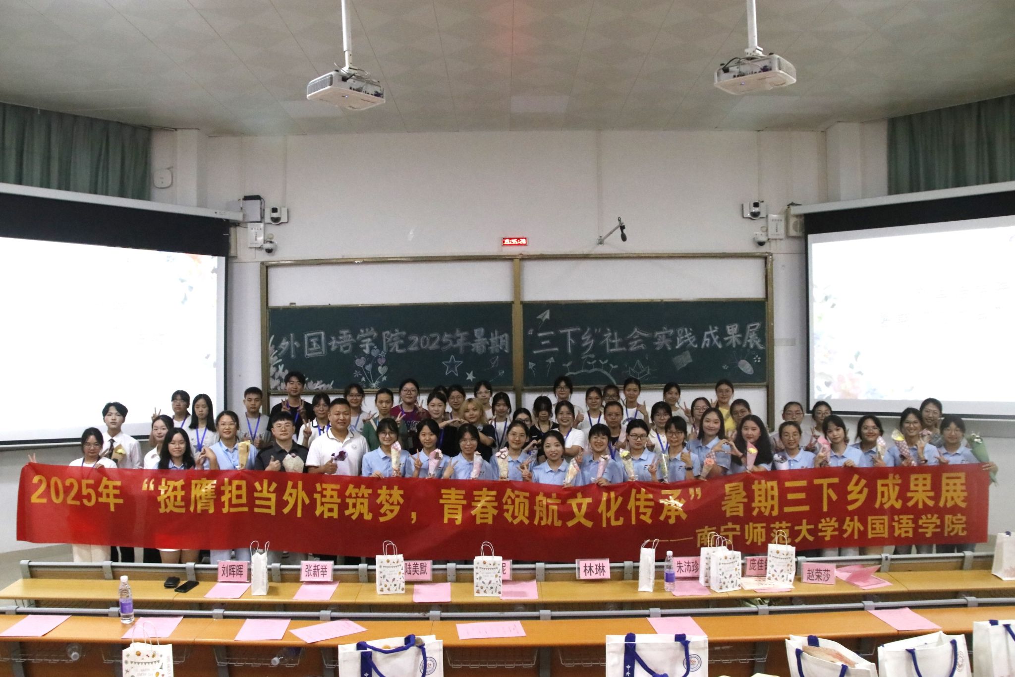 为提升员工社会实践能力,深化对“三下乡”活动的理解,威廉希尔中文官网于10月14日在武鸣校区2号教学楼209教室举办以“挺膺担当外语筑梦,青春领航文化传承”为主题的2025年暑期“三下乡”社会实践活动成果展。参加本次活动的有公司党委副书记刘晖晖、学工办张新举老师、院团委员工会团副主席团成员、武鸣校区各二级学院员工代表,以及“三下乡”志愿者和2023级、2024级、2025级部分员工。