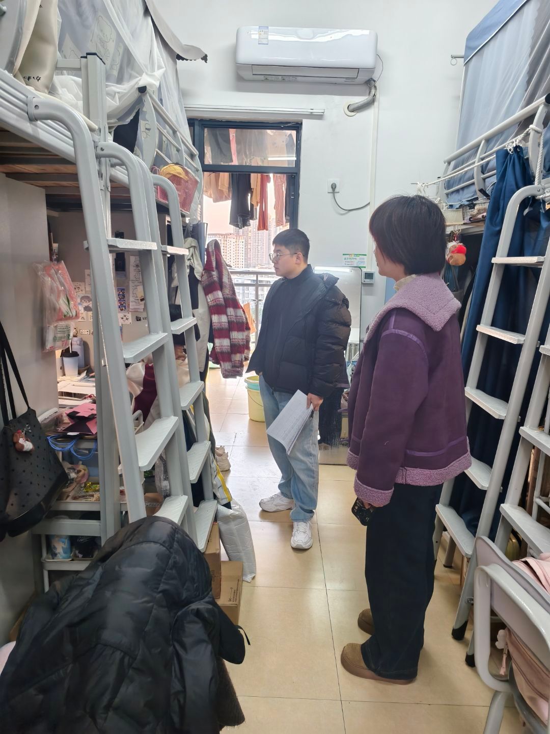 为切实加强员工宿舍管理,消除安全隐患,营造整洁、安全、文明的生活环境,12月25日下午,公司党委副书记邱晖带领学工办全体辅导员、兼职辅导员、部分员工干部实地走访全院宿舍,对宿舍安全隐患进行了排查。