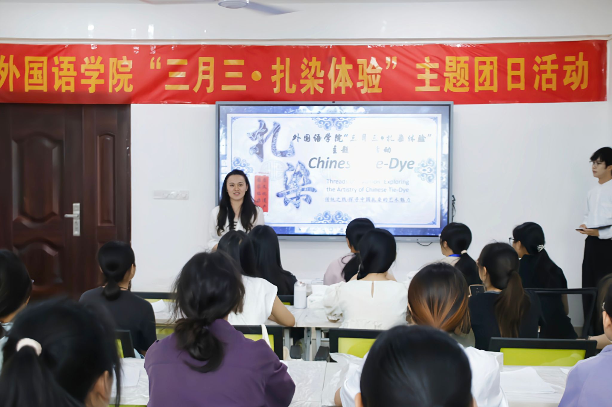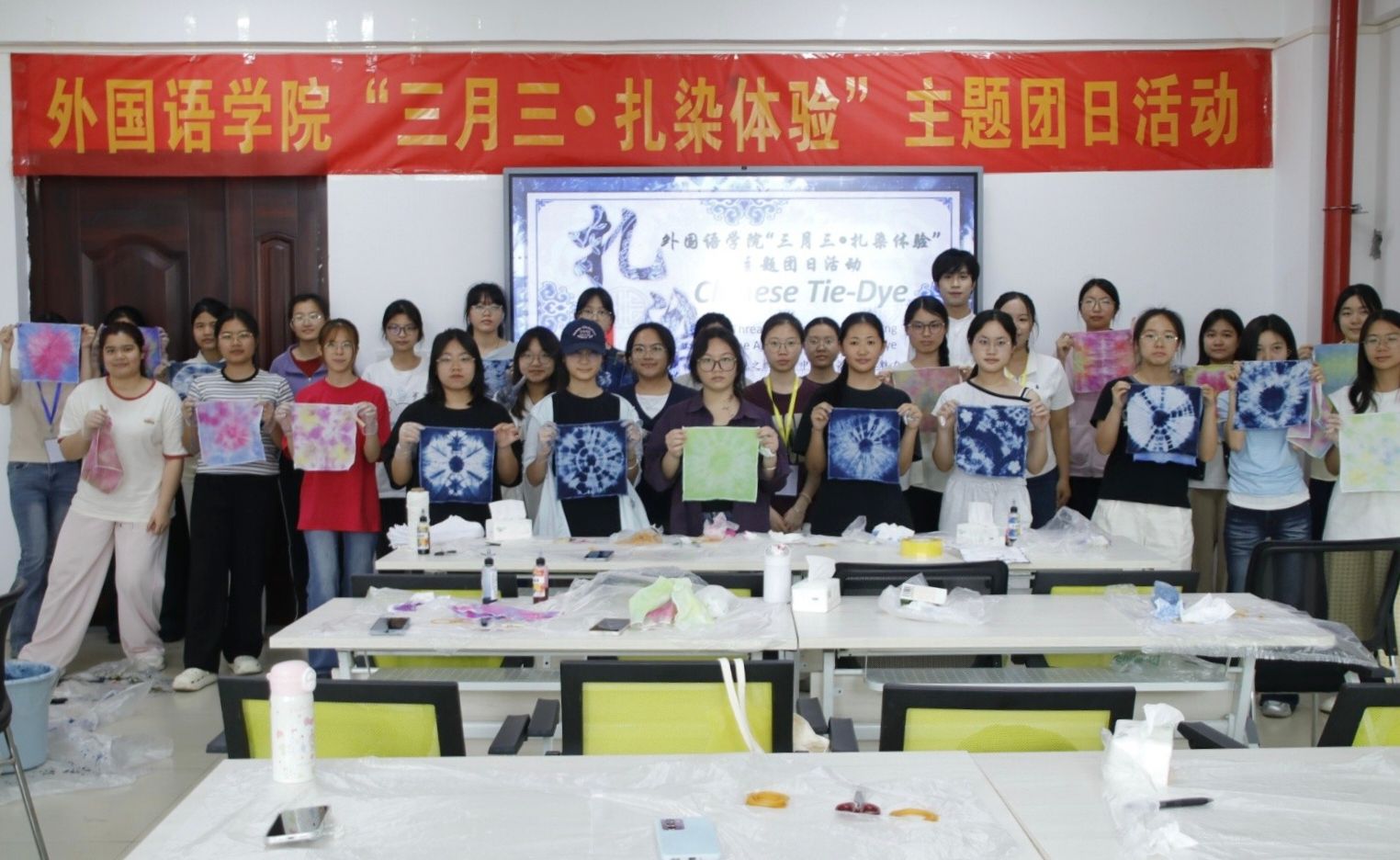 为弘扬中华优秀传统文化,丰富校园文化生活,4月1日下午,威廉希尔中文官网在实验楼1B-516会议室举办“蓝染匠心,韵染‘三月三’”主题团日活动。此次活动以扎染非遗技艺体验为载体,巧妙融合学院英语专业特色,让员工在动手实践中感受传统技艺的魅力。