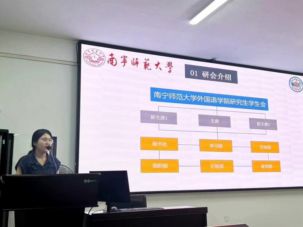 最后,外院研究生党支部与院研究生会各机构负责人进行专题宣讲,欢迎各位研究生新同学踊跃加入外院研会大家庭之中,提高思想站位,发挥平台优势,勇于实践锻炼,一同续写服务研究生同学、建设美丽外院的新篇章。