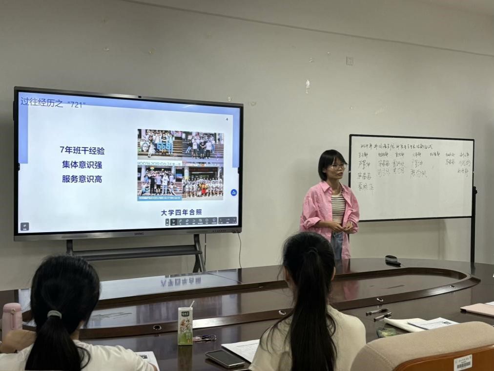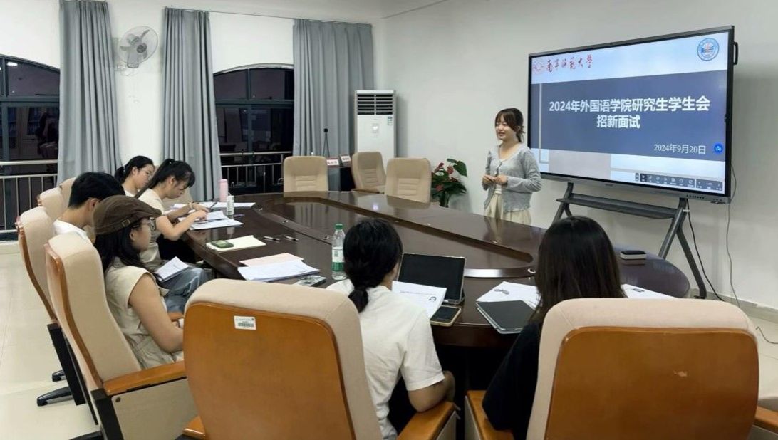 2024年9月20日晚,威廉希尔中文官网研究生员工会(外院研会)于武鸣校区实验楼1-B614举办了外院研会纳新面试活动。参与本次活动的有外院研会前任主席梅汉清、现任主席邓杰妹、纪检部部长杨明凤、组织部部长黄霞、秘书处秘书长补云桐、文体部部长罗岚莎、学习部部长谢冰洋以及24级意向参加纳新面试的外院研一新生。本次活动由研会主席邓杰妹主持。