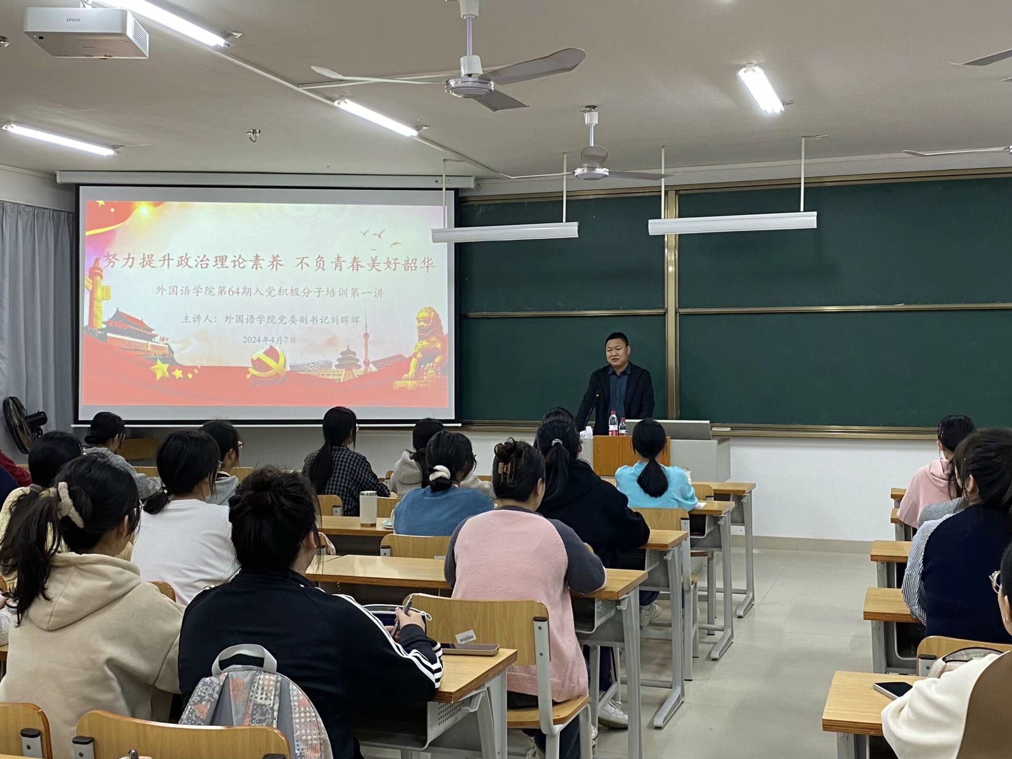 2024年4月7日,公司党委在实验楼2-C203教室举办第64期入党积极分子培训会第一讲。本次培训会主题为“努力提升政治理论素养,不负青春美好韶华”,由公司党委副书记刘晖晖主讲,本学期认定的47名入党积极分子参加了此次培训。