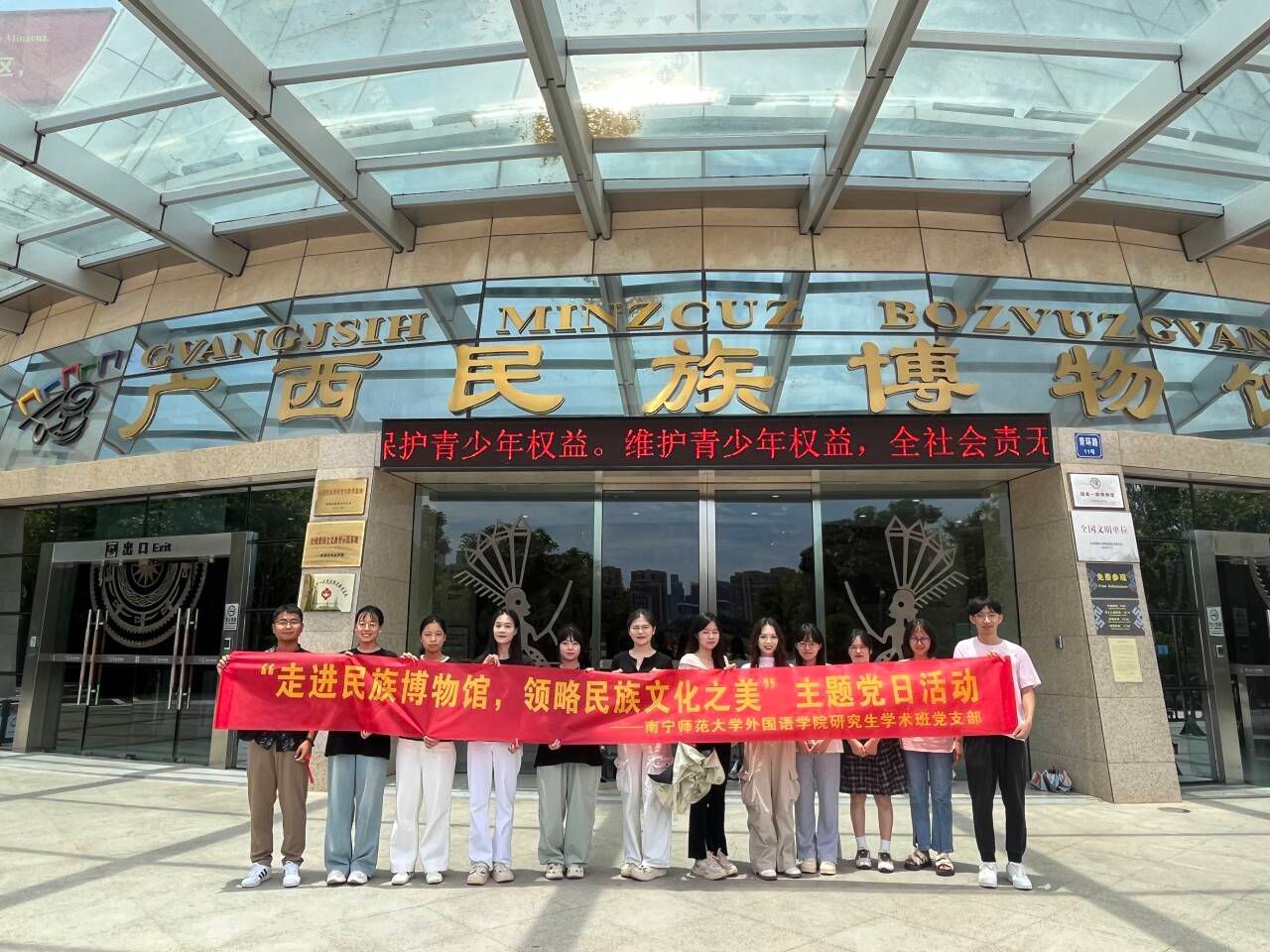 支部党员同志全程认真参观。据介绍,广西民族博物馆以收藏、研究和展示广西12个世居民族的传统文化为主要工作任务,同时兼顾对广西周边省份各民族以及东南亚各民族的文化研究、文物资料收藏和宣传展示。广西民族博物馆是建国以来广西壮族自治区建设规模和投资规模较大的文化设施项目,是一座自治区级、全民所有、公益性、专业性融合现代发展的民族文化博物馆。在参观期间,大家观赏了别具特色的民族服装,聆听了刘三姐的故事,欣赏了各式各样的老物件,学习了与众不同的民族文字等等,感慨万千。