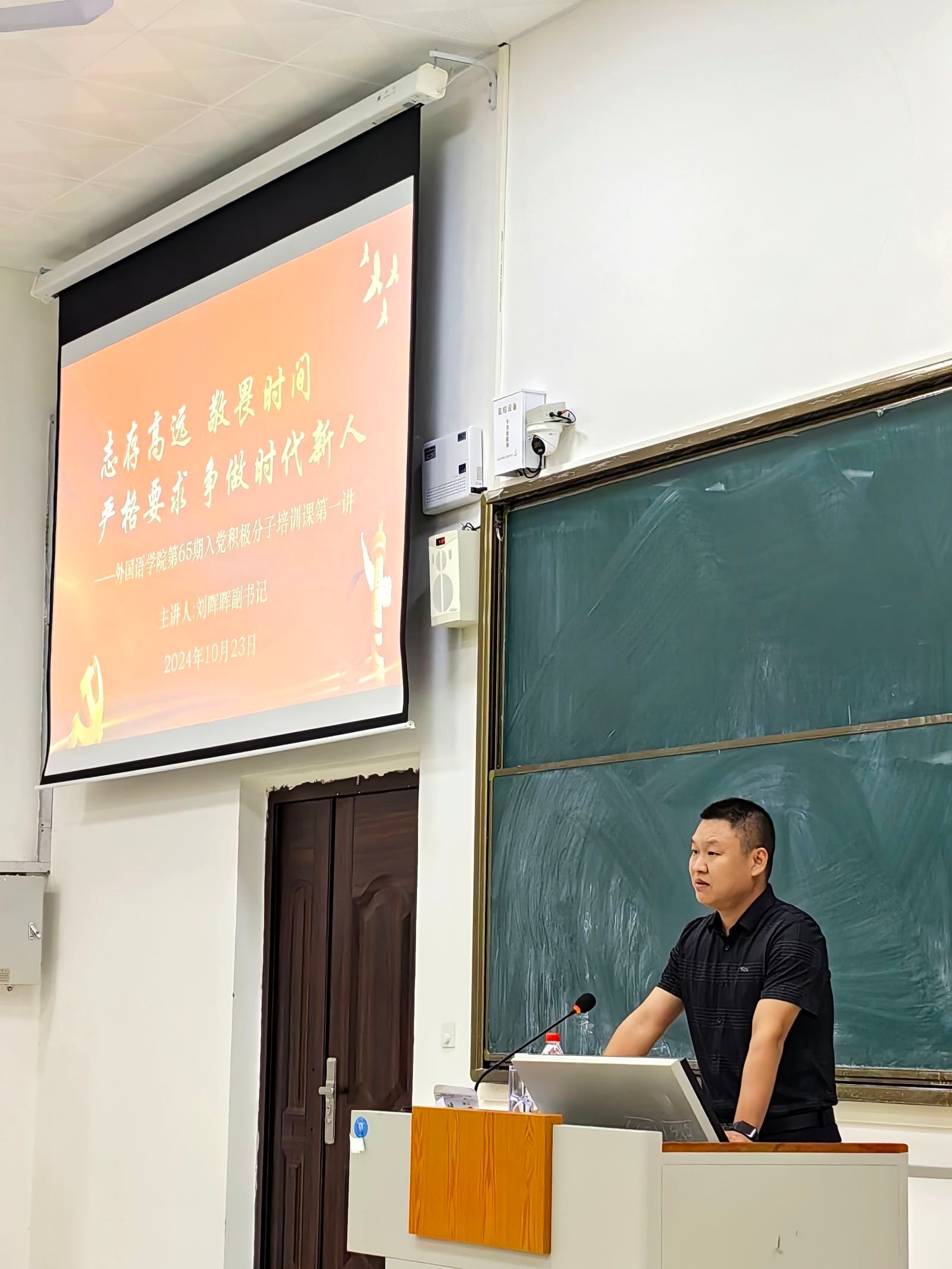 随后,刘晖晖副书记以习近平总书记在《求是》杂志发表的文章《培养德智体美劳全面发展的社会主义建设者和接班人》、在国家勋章和国家荣誉称号颁授仪式上的讲话、在全国教育大会上的讲话等内容为引领,围绕培训会主题分别向入党积极分子提出要求,他希望各位入党积极分子既要读万卷书也要行万里路,要志存高远,将理论与实践结合起来。同时,他还希望各位入党积极分子要严于律己、敬畏时间、不断提高自己的品德修养,争做时代新人。