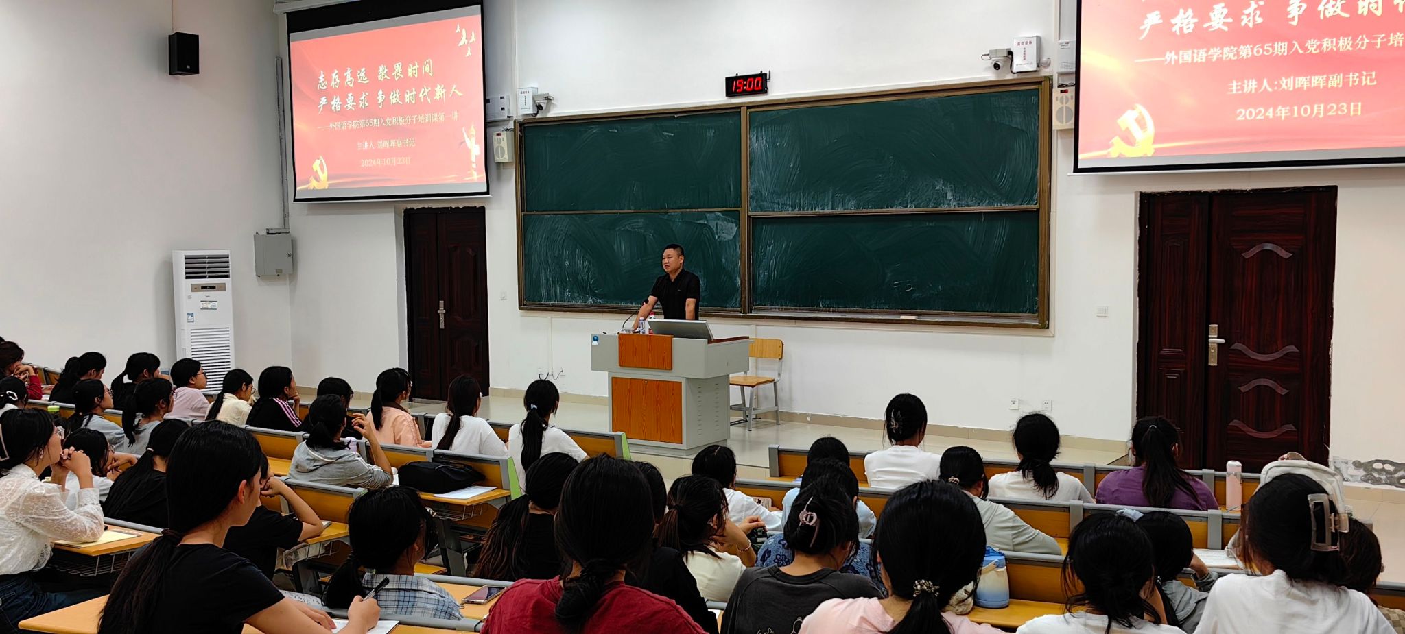 10月23日晚,公司党委在实验楼1B-113举办了第65期入党积极分子培训会第一讲。本次培训会主题为“志存高远,敬畏时间,严格要求,争做时代新人”,公司党委副书记刘晖晖主讲,本学期认定的125名入党积极分子参加了此次培训。