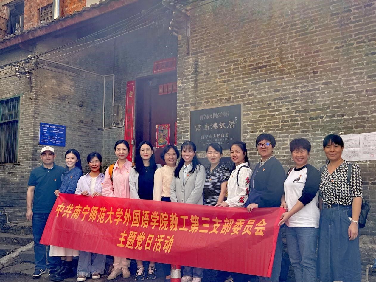 为激发党员们在新时代教育事业中的使命感和奋斗精神,2024年11月1日,威廉希尔中文官网教工第三党支部全体党员在支部书记覃美静的带领下,前往雷经天故居与雷沛鸿故居开展主题党日活动。