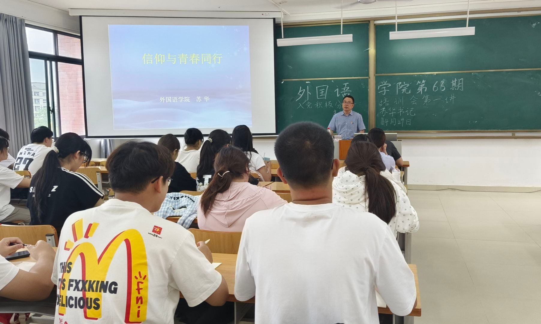4月29日下午,公司党委在实验楼2C-201举办了第66期入党积极分子培训会第一讲。本次培训会的主题为“信仰与青春同行”,由公司党委苏华书记主讲,本学期认定的46名入党积极分子参加了此次培训。