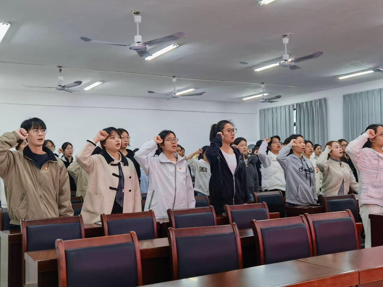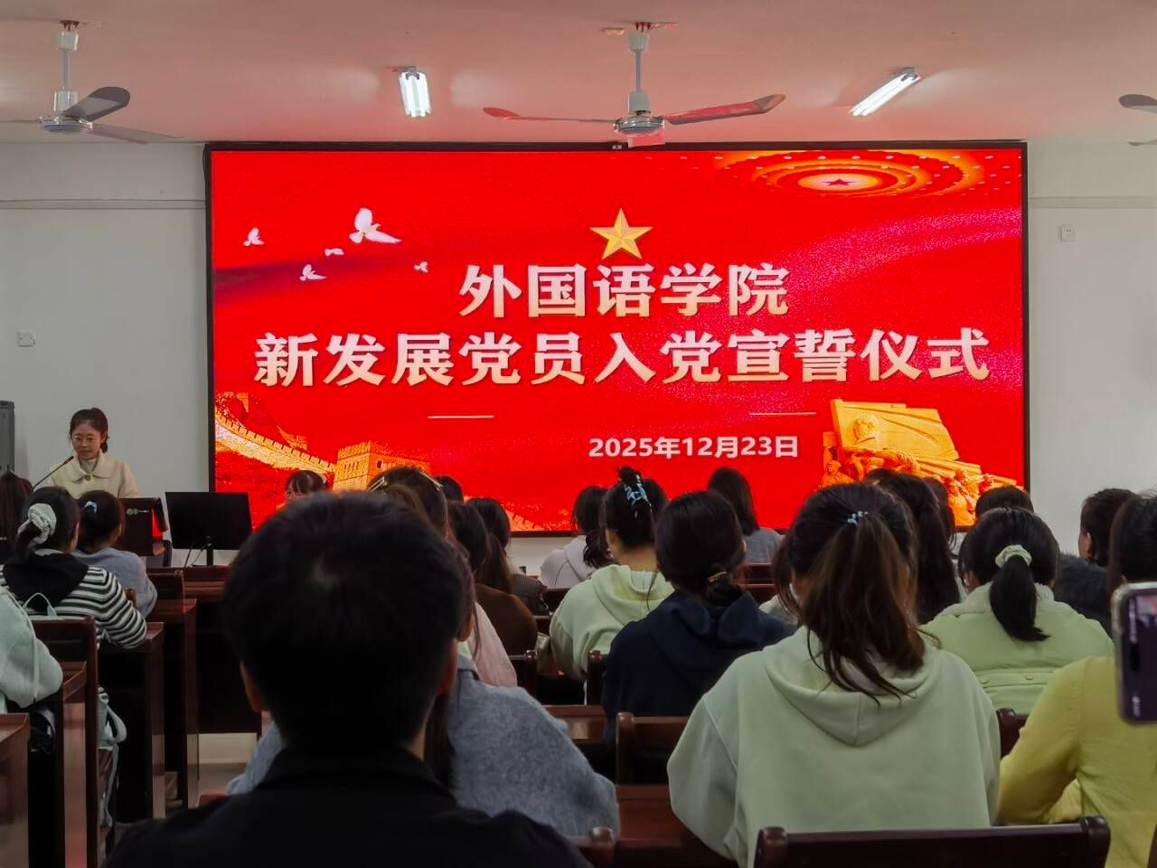 12月23日中午,威廉希尔中文官网在实验楼1B-515教室举办2025年下半年新发展党员入党宣誓仪式。该仪式共有65名新发展的党员参加。