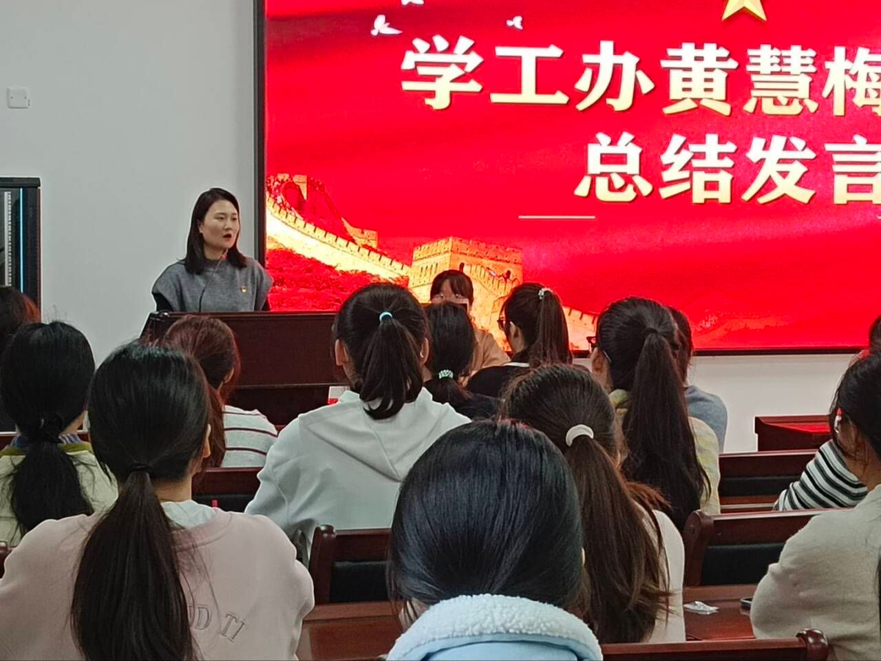 最后,学工办黄慧梅老师总结,指出新党员应铭记誓言,将其转化为学习工作和生活中的持久动力,并提出三点希望和要求:一是要坚定理想信念,二是要严守党的纪律,三是要争当先锋模范。