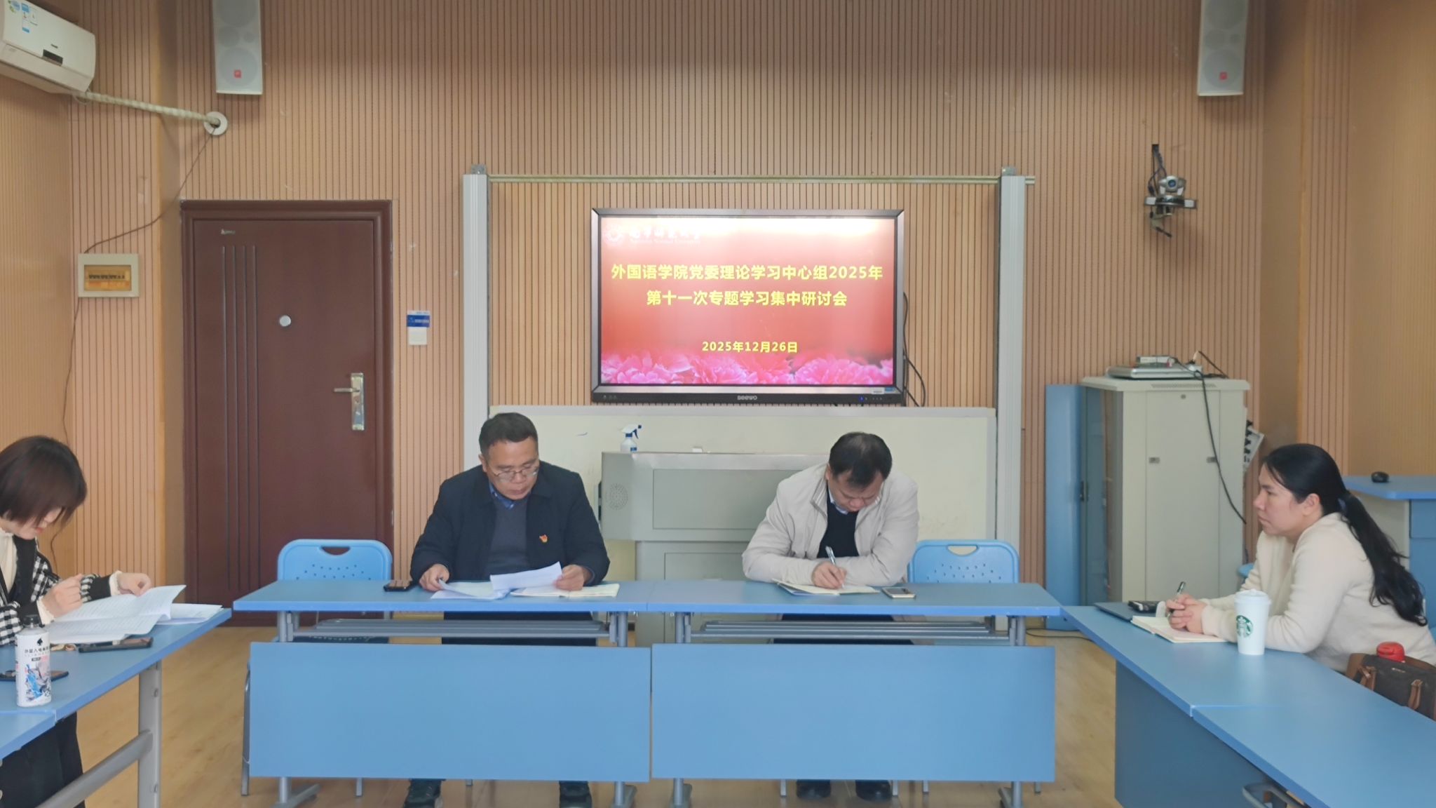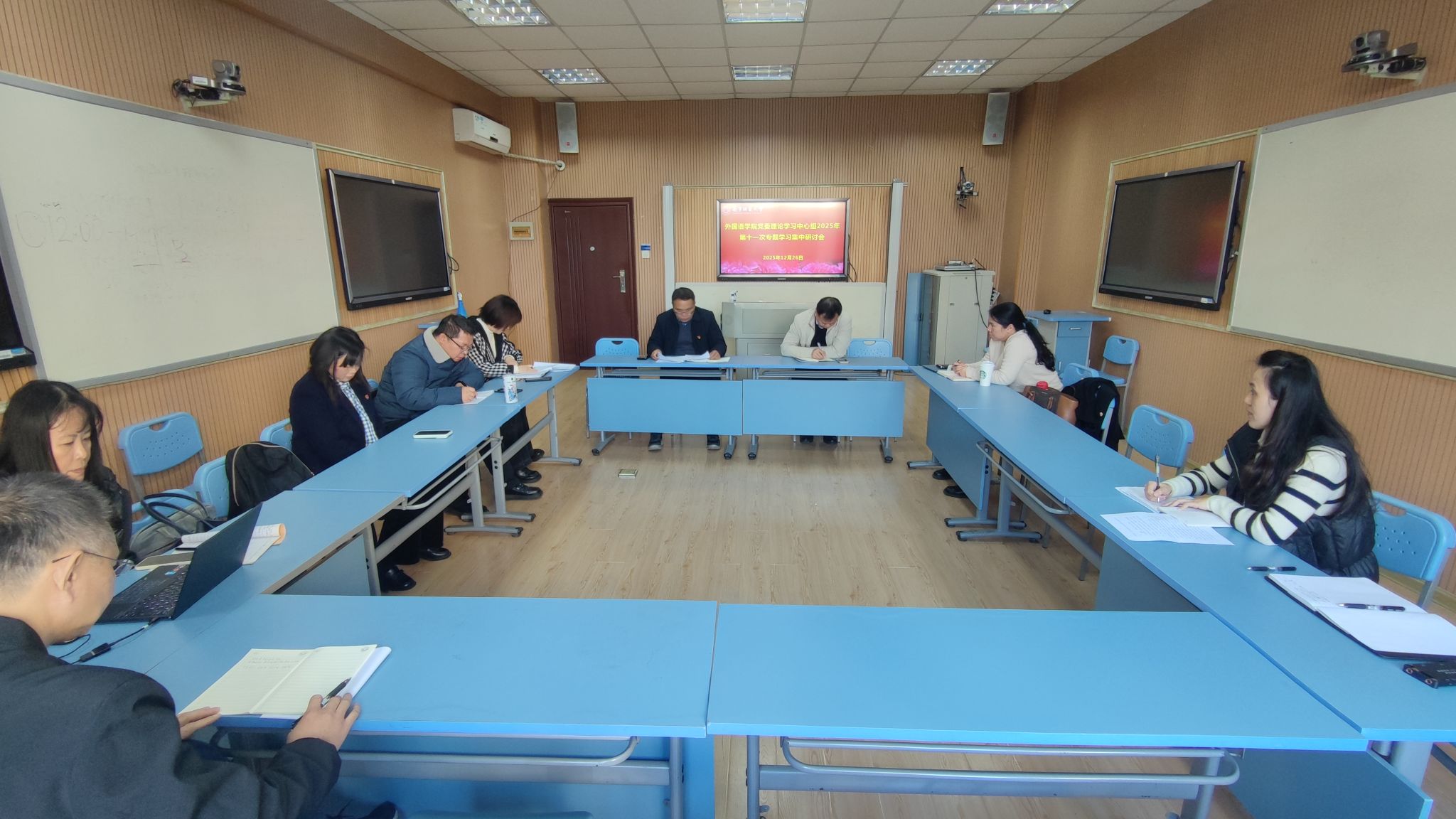 12月26日下午,公司党委理论学习中心组在明秀校区文星楼404教室召开本年度第十一次专题学习集中研讨会。会议由公司党委书记苏华主持,公司党委委员、纪委委员及各党支部书记参会,学院副经理张晓鹏列席会议。