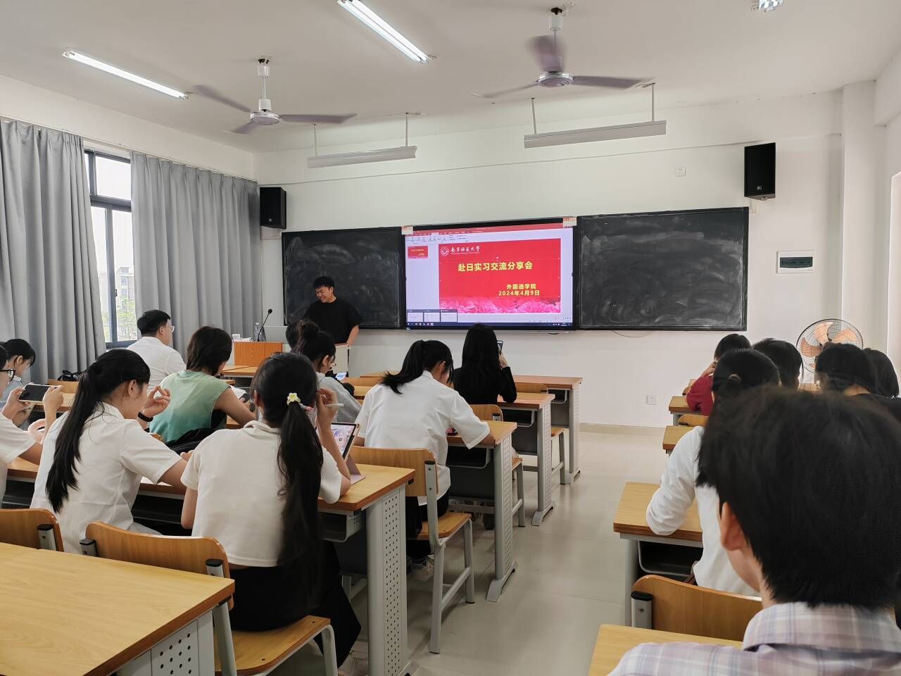 首先,赤门教育负责人刘老师向21级日语专业员工详细介绍了赴日实习的项目背景、目的及优势。此外,他还强调了实习实践的重要性,赴日实习能让同学们将有机会深入了解日本的企业文化、提高日语水平,为将来赴日本留学或者工作积攒宝贵的经验。
