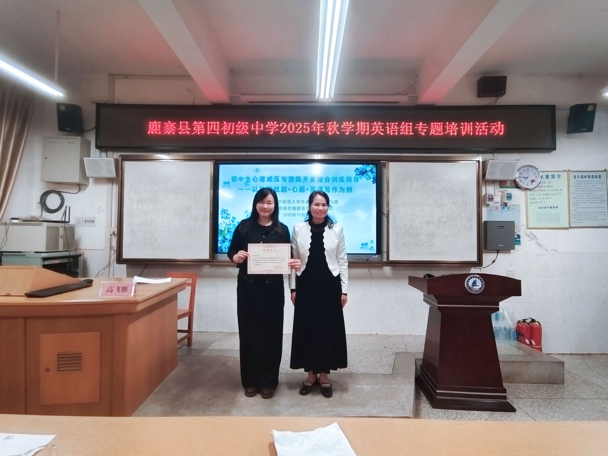 为拓宽毕业生就业渠道、深化校校合作育人,近日,威廉希尔中文官网副经理高飞雁前往鹿寨县第四初级中学,开展教师专业培训及访校拓岗活动。该校董事长梁梅、英语组全体教师、集团校部分英语教师以及相关行政负责人热情接待并全程参与。